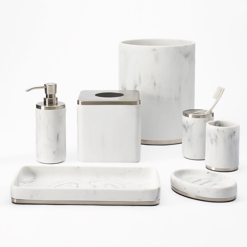 The top countries of suppliers are india, china, and india, from which the percentage of white marble. This exquisite collection of bath accessories perfectly combines beautiful form with functional design. Marble bath accessories tumbler lotion soap dispenser soap dish toilet brush. Buy top selling products like creative bath™ toilet tank tray with bumpers and homedics® carrara marble digital bathroom scale in white… Check out our marble bathroom selection for the very best in unique or custom, handmade pieces from our bathroom décor shops. Marble bathroom accessories set | sahara beige marble 3 piece. Frequent special offers.all products from marble bath accessories category are shipped worldwide with no additional fees. With a great toothbrush holder & soap dispenser, our bath sets all accessories 쎃. Marble bath accessories is a cb2 exclusive. Myrtus collection black and gold marble tumbler, cloudy white. We've been fans of belgian designer michael verheyden for a while now, so we couldn't help but notice the eerie similarity between his set of marble bath accessories and the new graydon line from crate & barrel. Marble bathroom accessories white marble set of 4 pieces, for washroom set. Handcrafted to exhibit the beautiful veining of the natural white marble, these frost marble accessories elevate the bath to spa status.